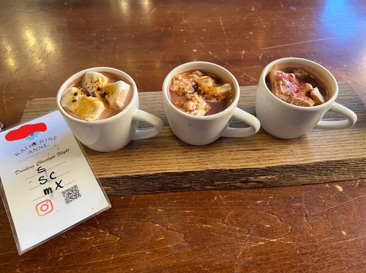 got a flight of three mini hot chocolates: semi-sweet, salted caramel, and Mexican.
