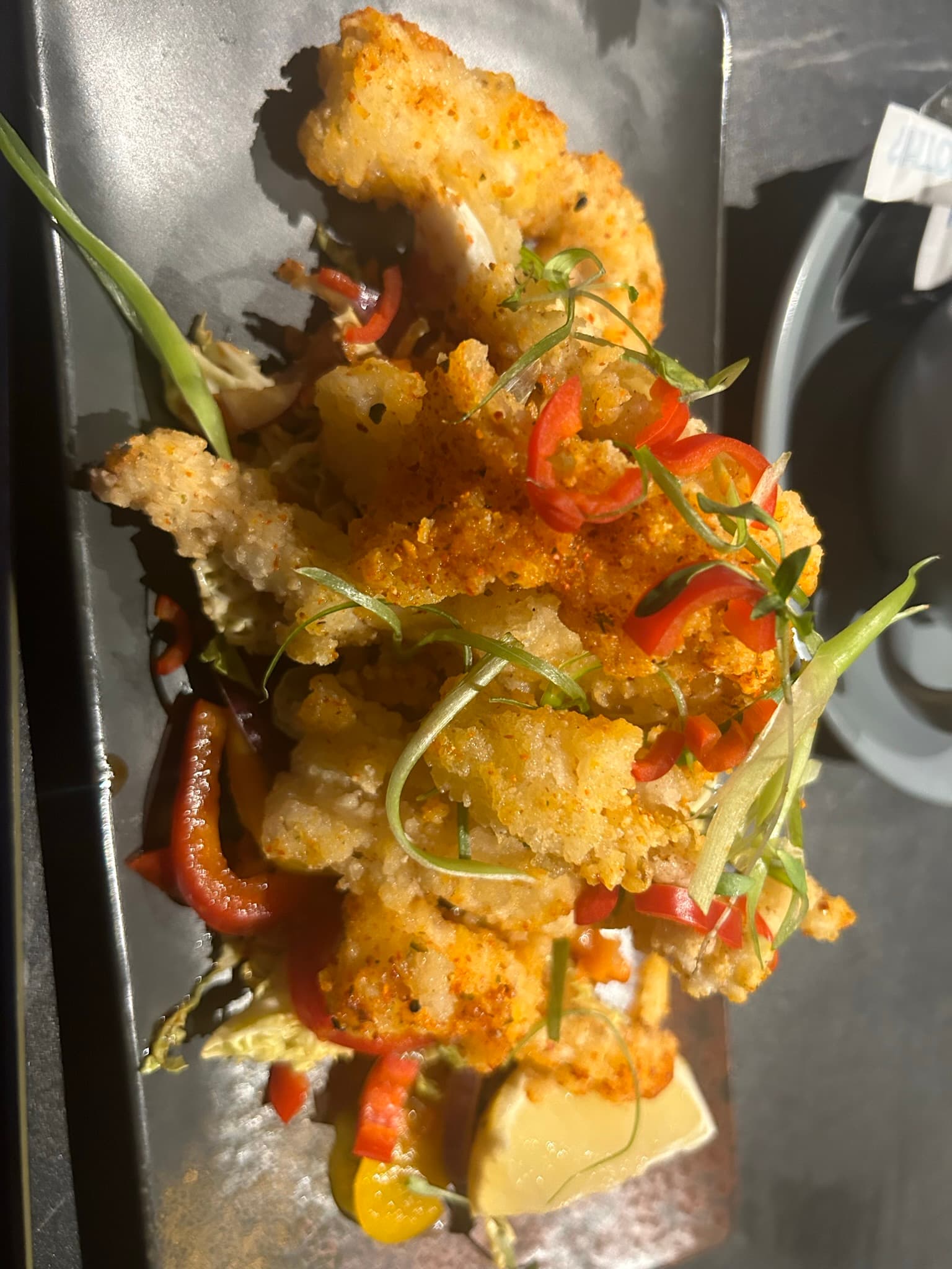 The starter was squid with a vegetable salad and Shichimi coating. Delicious and quite filling too…