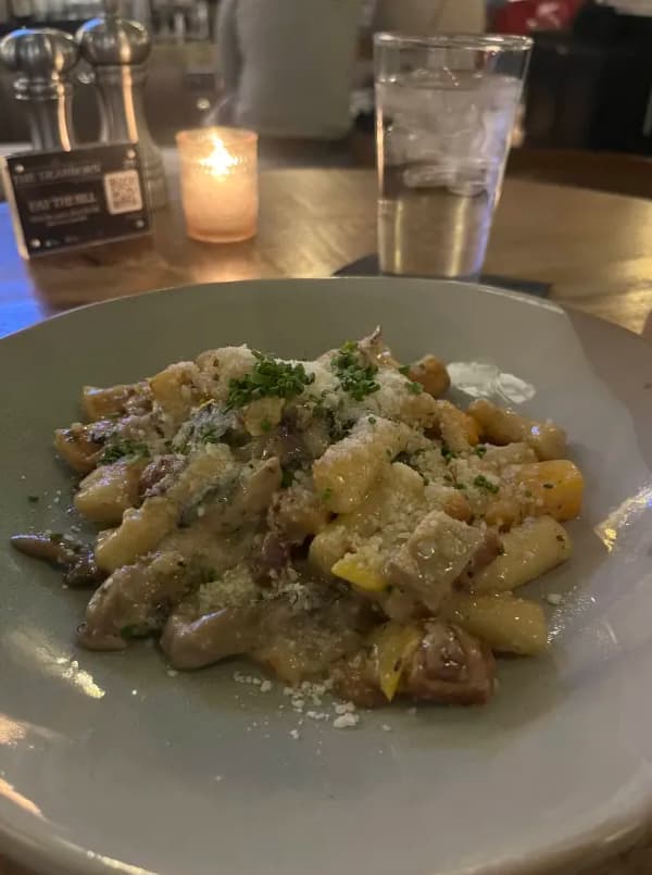 And before the show, I grabbed dinner at The Dearborn, a nice upscale American restaurant that’s a few blocks east of the theater. Got a Parmesan gnocchi with mushrooms that was very excellent, an okay-ish raspberry sorbet for dessert, and an unfortunately overpriced $12 hot chocolate that wasn’t hot enough to melt their house-made marshmallow ![]()
