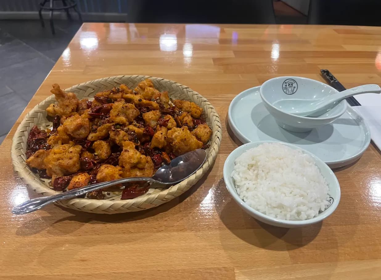 Anyway, I decided to eat my first proper meal of 2026 there. Have some chicken with peppercorn (Chongqing dry chili chicken) ![]()