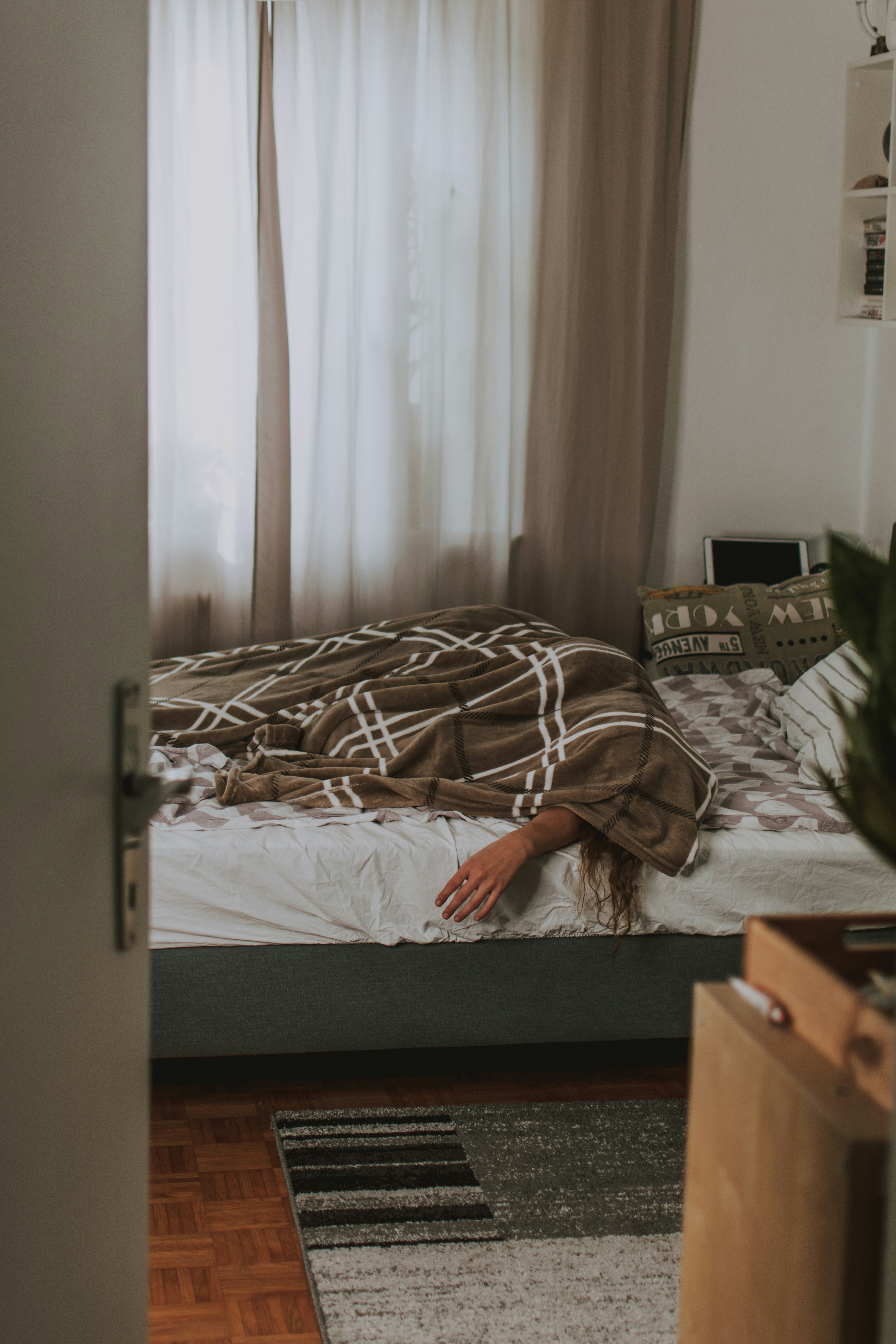 Ideas: Maybe a shot of a builing in the city at night, like this one or a dark figure standing on a rooftop in the darkness or sitting on one alone looking ove the city (like this, but without the smoke or this). Alternatively, maybe a shot of an appartment bedroom (if possible with a girl sitting on the bed reading or on her laptop).