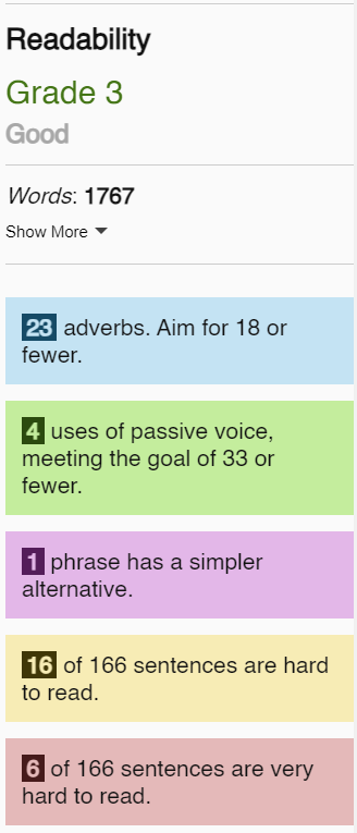 The only part that I find useful is if I can get it to the middle grades without really changing a thing I wrote, then I’m only getting rid unnecessary compounding.(the two versions of the same text that has 10th grade and 6th grade as their label).