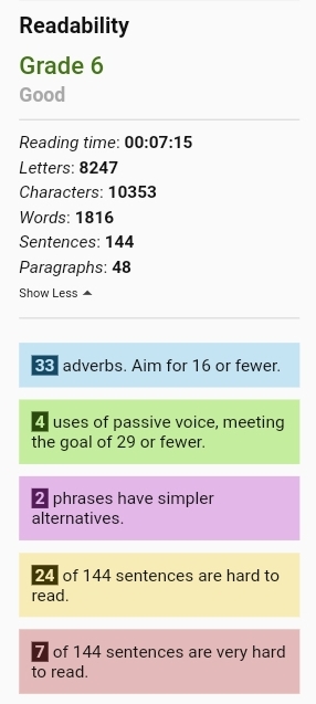 I’m not the biggest fan as it seems to only care about sentence length over content (I wouldn’t stick this in front of a twelve year old), but I suppose I can take it as a measure of my sentences not being overwhelmingly long, lmao.