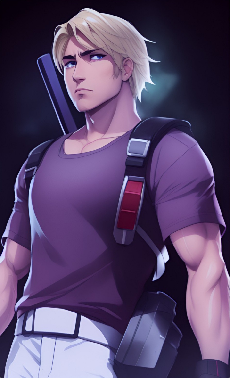Appearance: Angled features, crystal blue eyes, long blonde mane, slight tan, light athletic build, no scars or visible damage, energetic cheerful / cheeky voice.