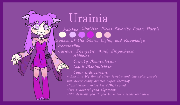 Name of your character (do you want it on the aesthetic: Yes/No): Urainia