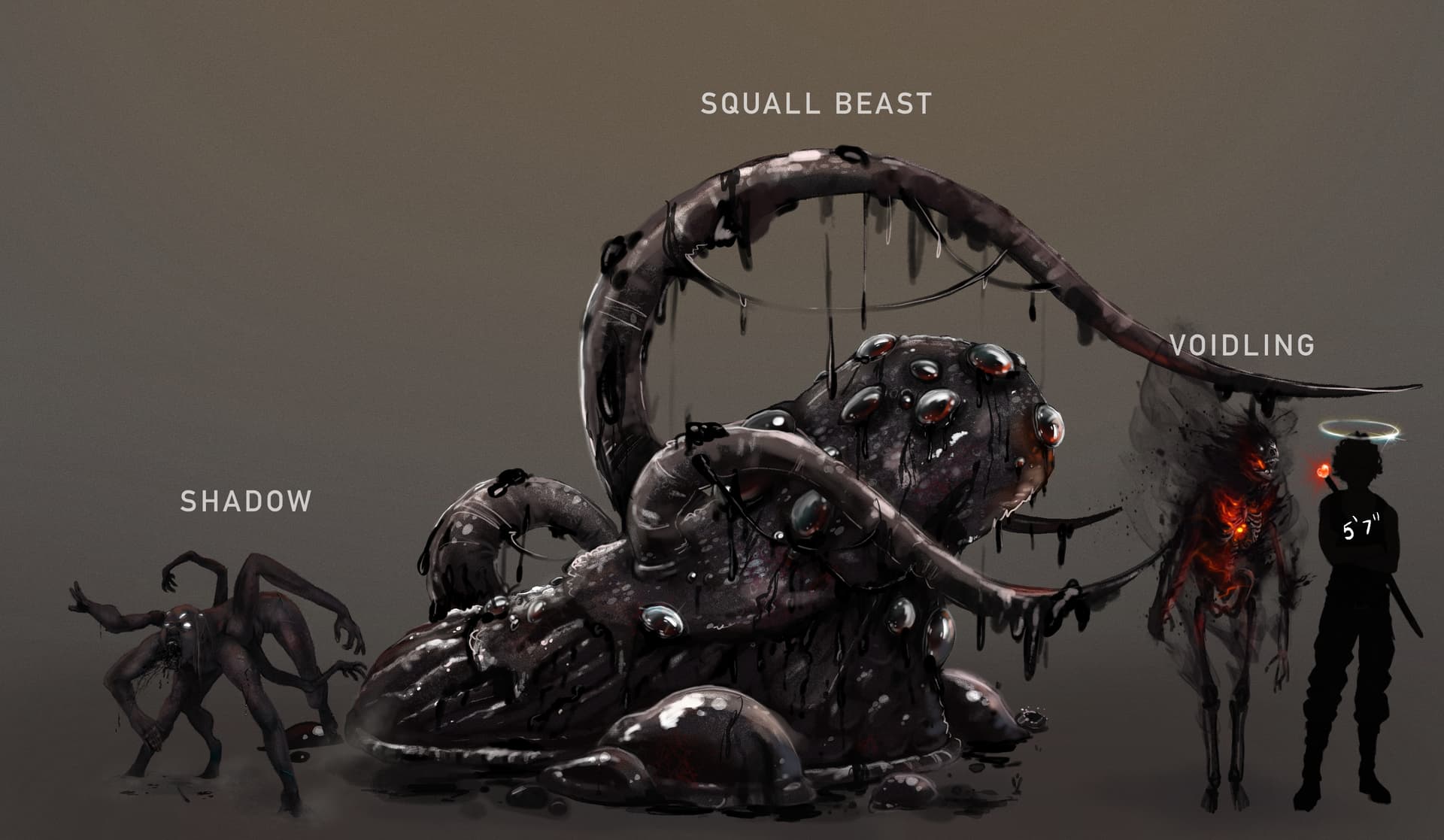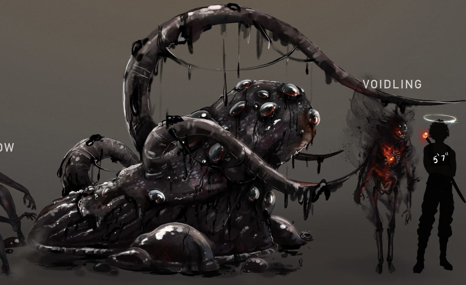 They’re like giant slugs made from jellied/coagulated ghost blood (which is black) and are covered in numerous unblinking black eyes that constantly weep blood. They have flagellum on their backs that function the same way insect antennae do, sensory-wise.