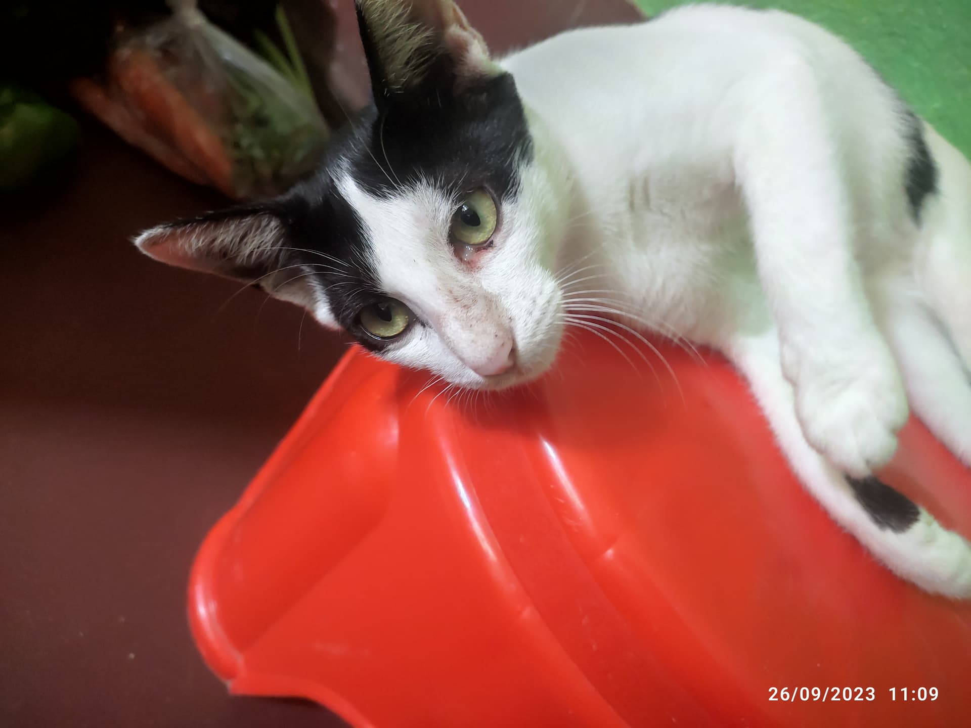 Then the the cat is Laattu, she gave birth to about 2 kittens a few days ago, she can’t talk properly