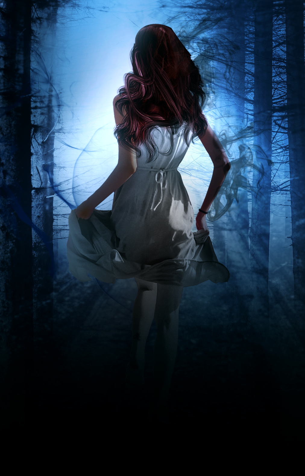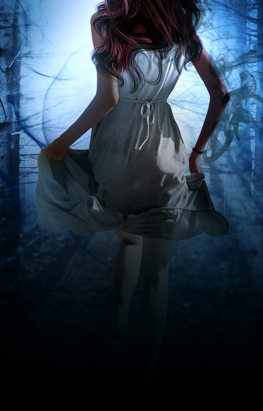 The main character is multiracial with a light tan complexion, and naturally red/auburn hair(tone in cover is inaccurate). Want it to appear as though she is running from something. If could, put willow trees, as this tree is predominant in setting. Also, when add don’t, please use same font for both.