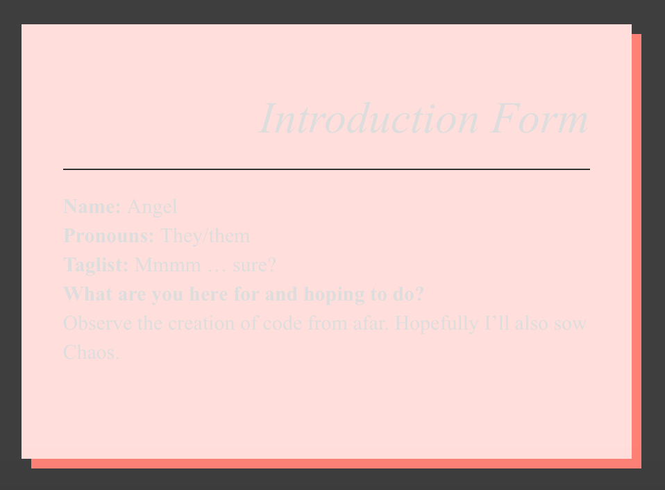 <span style="font-size: 12px; font-family: Garamond; display: block; color: #ae0808; background-color: #ffffff; margin: auto; padding: 20px; border: 3px solid; border-color: #ae0808; width: 222px; text-align: justify; height: 250px; box-shadow: 8px 8px 0px #000000; overflow-y: scroll;"><span style="font-size: 18px; font-family: Garamond; display: block; margin: auto; text-align: right; color: #ae0808;">**When/how did you get into coding?**</span>