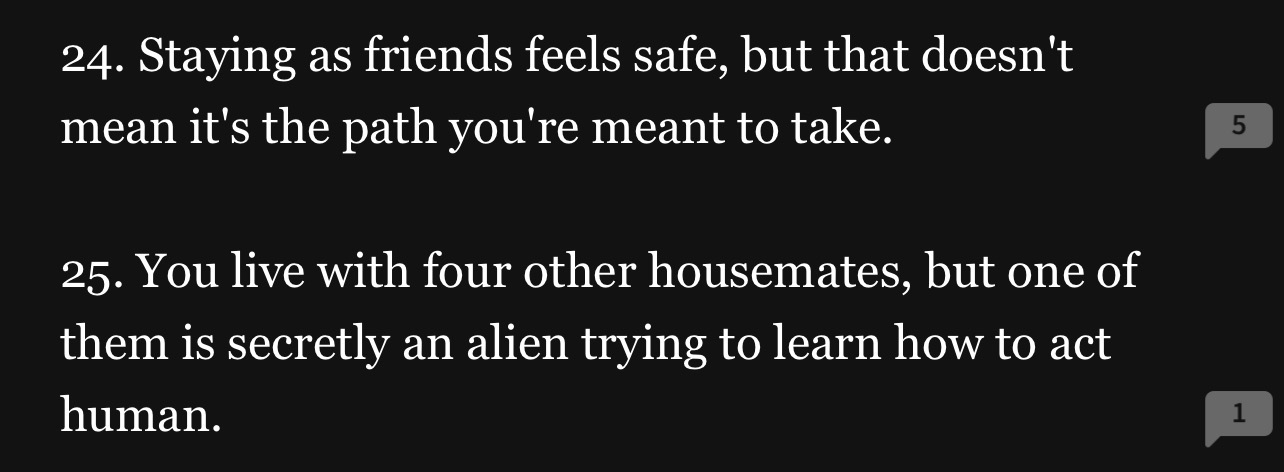 Those are all my thoughts. A lot of the prompts seem pretty good this what but I’ll think more about it after I eat breakfast. I might even end up doing multiple this year. We’ll see. I need to eliminate more probably lol