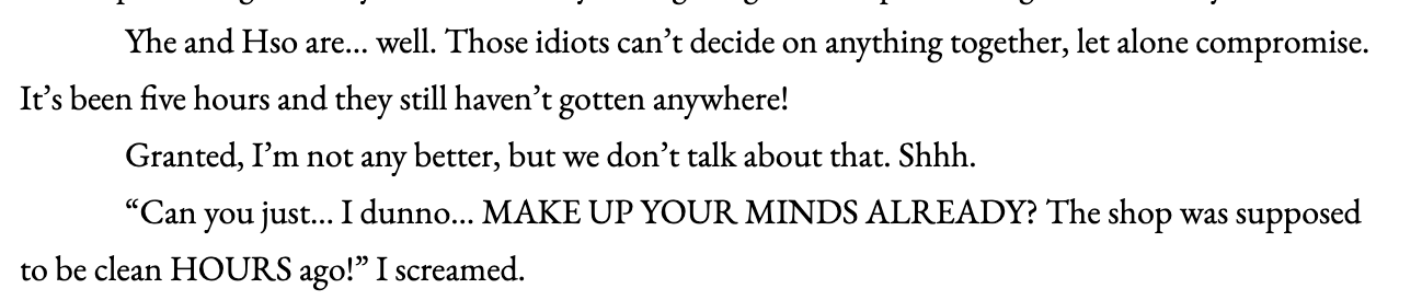 And she was beginning to love them as much as she resented them. That was a recipe for becoming Letitia’s shadow, in truth. She was a tangled ball of conflicting desires and strangled justice. It was never a pleasant place in her own mind.