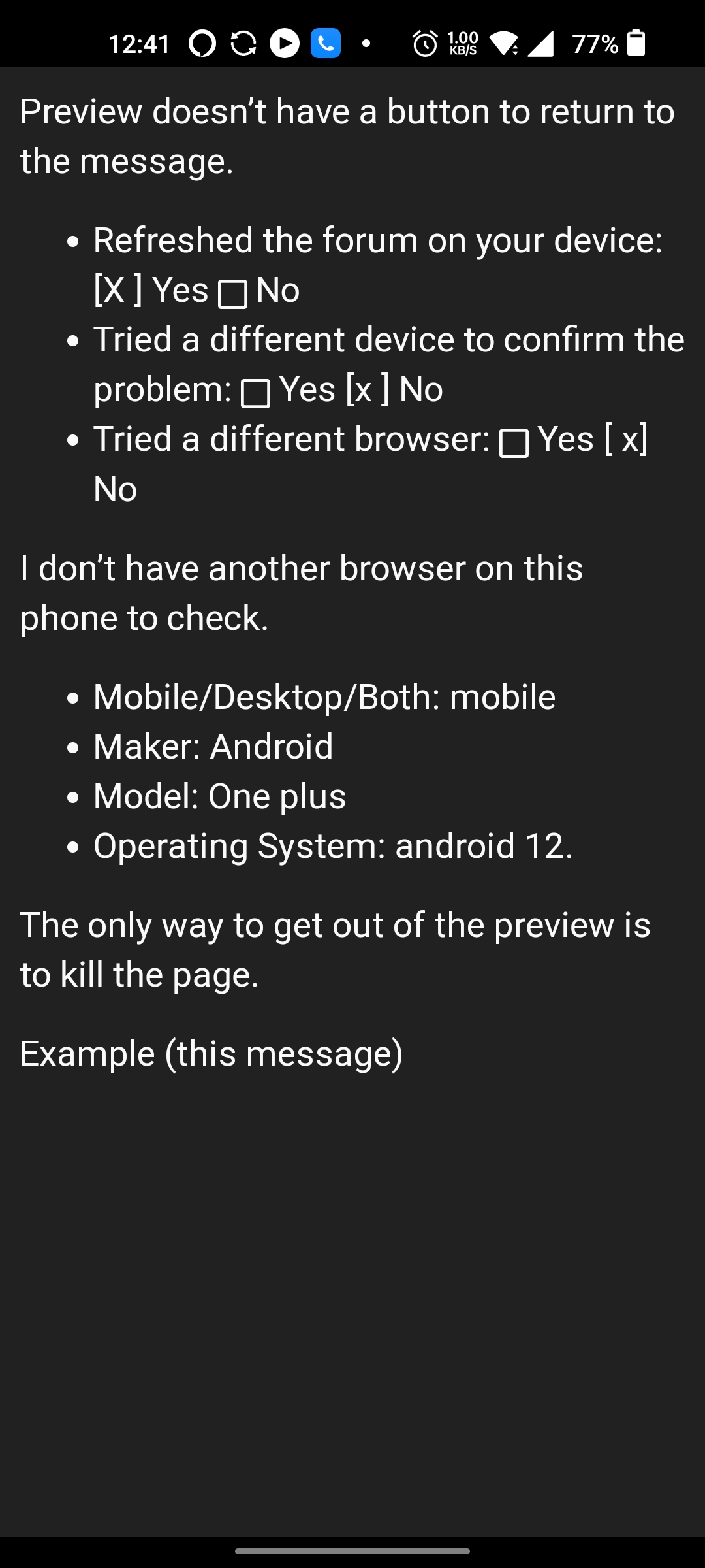 Okay the scrollbar should be back at any rate. I’ve been trying to replicate your preview screen issues with no luck, but I’ll keep working on it.