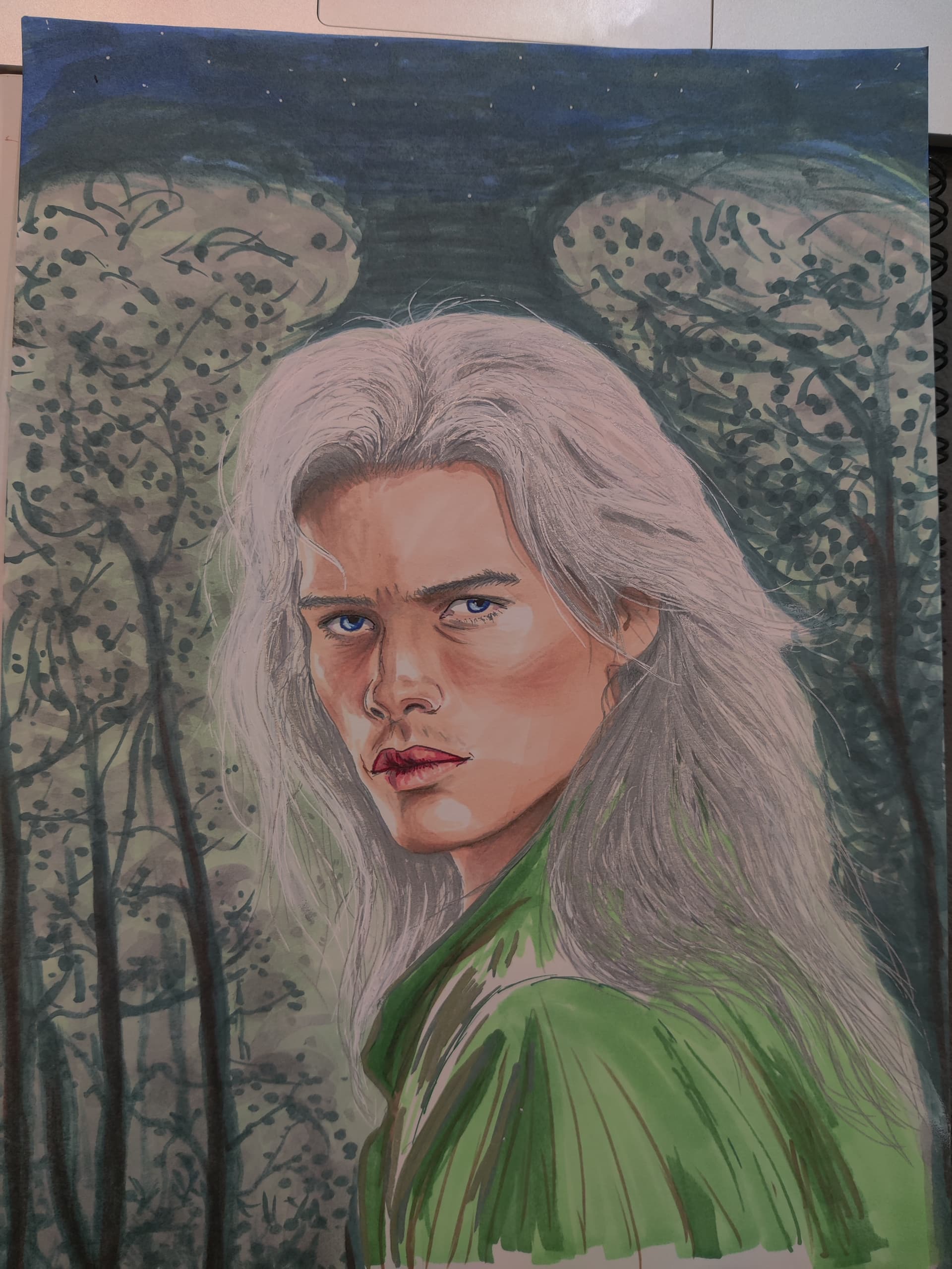 I tried to challenge myself to draw a background because I thought it would look cool against his silver hair, but apparently I’ve never seen a tree before.