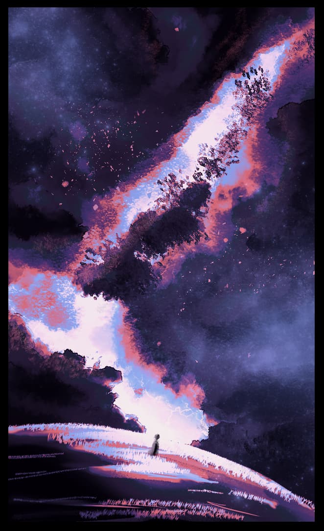 Actually, in the drawing, his clothes are blue, but I edited it while making the cover to match aesthetics ![]()