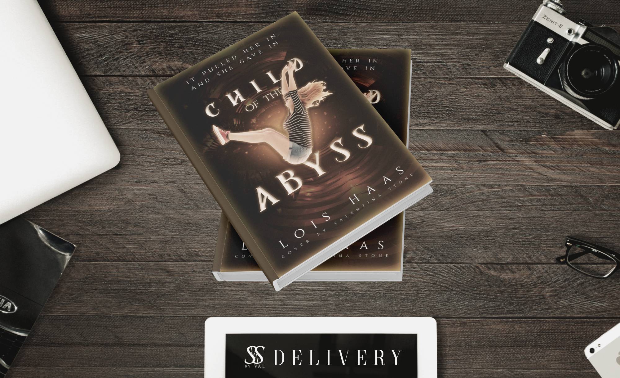 Ideas: Maybe a girl falling into an abyss? And possibly the edges around the cover are golden.