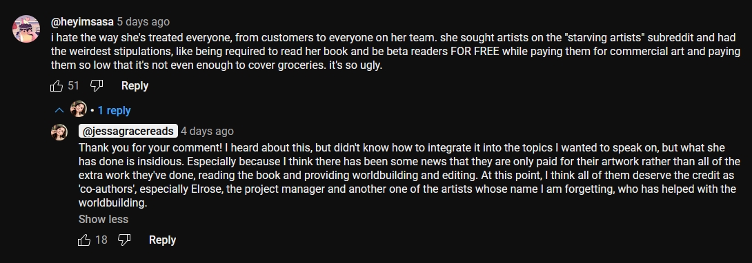 I heard about the starving artists subreddit thing. Someone else talked about it in a video and even showed Audraās post.