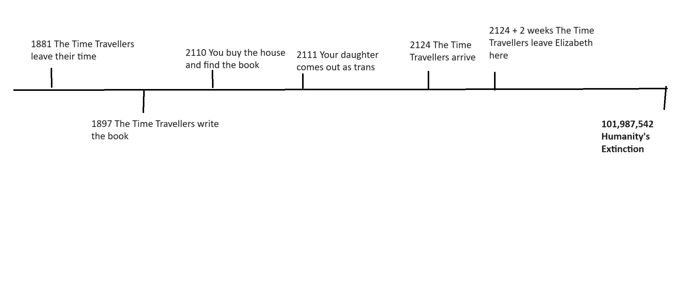Alexander, David and Elizabeth are 19th Century people, Alexander is a super genius who basically invents a carriage-looking machine that can travel through time at extreme speed in either direction, which is an extreme anomaly as never ever in the history of the entirety of existence has anyone else been able to manage that, in any civilization, in any solar system, in any universe