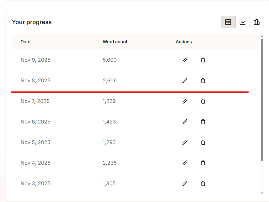 Day two in realizing it on average takes me between 2-4 hours to write the daily word count and this is not sustainable for workdays
