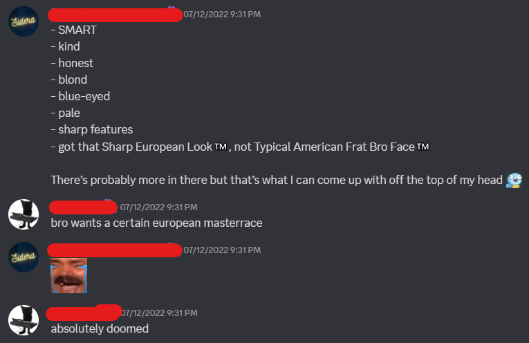 And another funny and somewhat awkward thing that happened: I was talking about how some people said that two of my characters, Eddie and Edin, are basically the same character just because they share a lot of similarities on the surface. (Spoiler alert: they’re not, and the deeper you dig, the more different they appear.) I started listing them out: “They’re both blond, blue-eyed, pale, with a lanky build…”