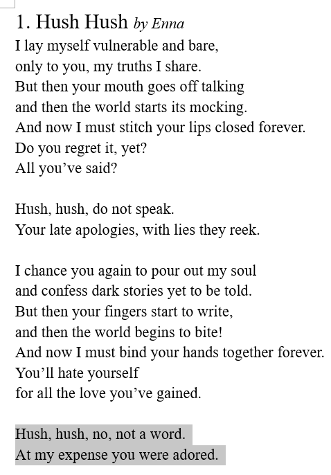 But for some reason I totally hate the two lines with speak and reek, although I can’t really articulate why. There’s probably nothing wrong with them, but they bother me. ¯\_(ﭢ)_/¯