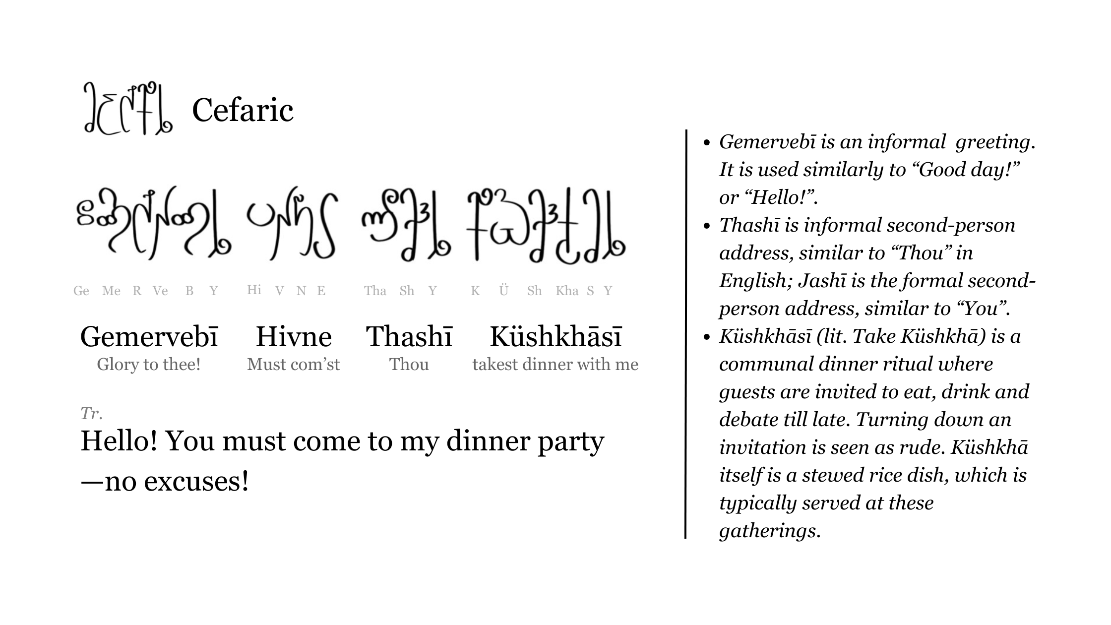 - All three languages bear similarities with each other, and are slightly mutually intelligible. Elenish and Vethranian are closer than Medovian is to either languages.