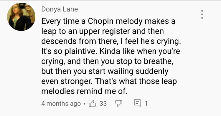 I remember reading someoneās comment about Chopin pieces. Specifically, this one: