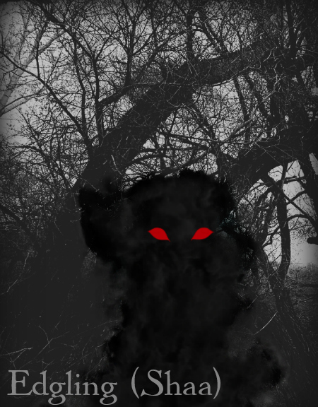 The Shaa look like puffs of black smoke with red, pupiless eyes (below). This is the default form. Unless you are super familiar with a particular Shaa, you cannot tell them apart until they shapeshift.