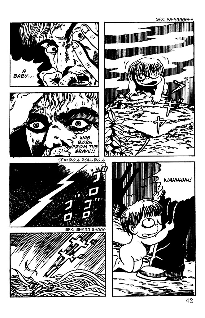 In some variations of the story, the man is cruel enough to throw the baby Kitaro towards a gravestone, dislodging one of his eyes from his socket.
